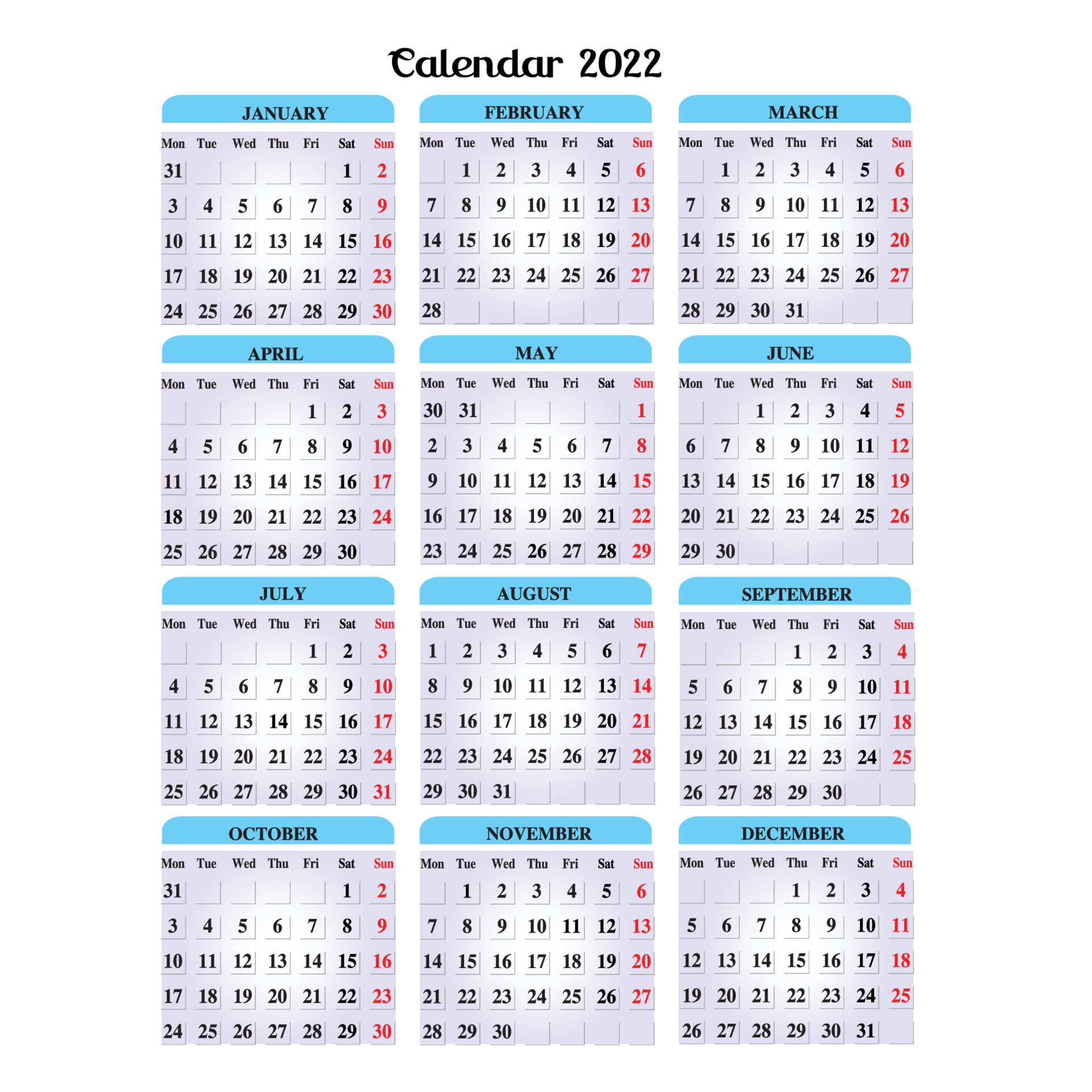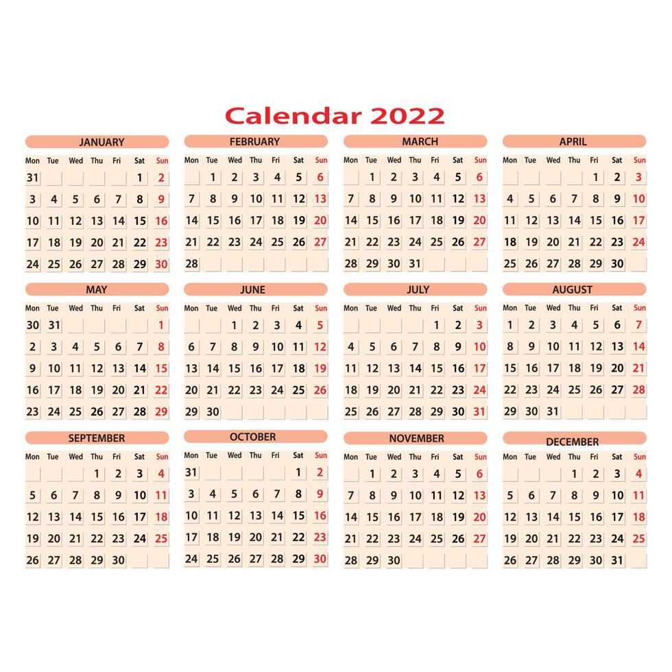 Calendar 2022 Date Panel 4417265 Vector Art At Vecteezy